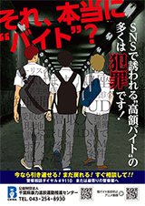 令和8年2月、千葉県内の全ての高等学校にこのポスターを配布して、闇バイトへの加担防止を働きかけました。